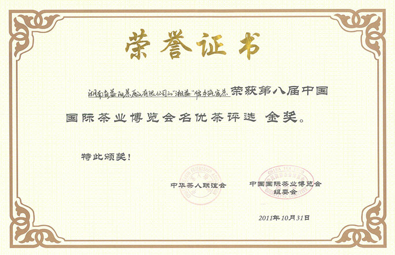 第八屆國(guó)際茶博會(huì)金獎(jiǎng)(手筑官茶)