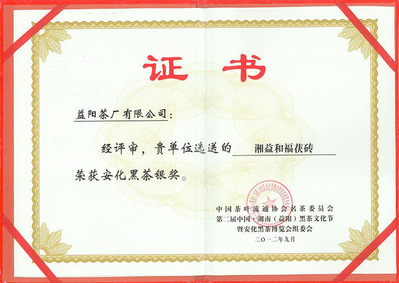 2012年 第二屆中國湖南黑茶文化節(jié)銀獎(和福)
