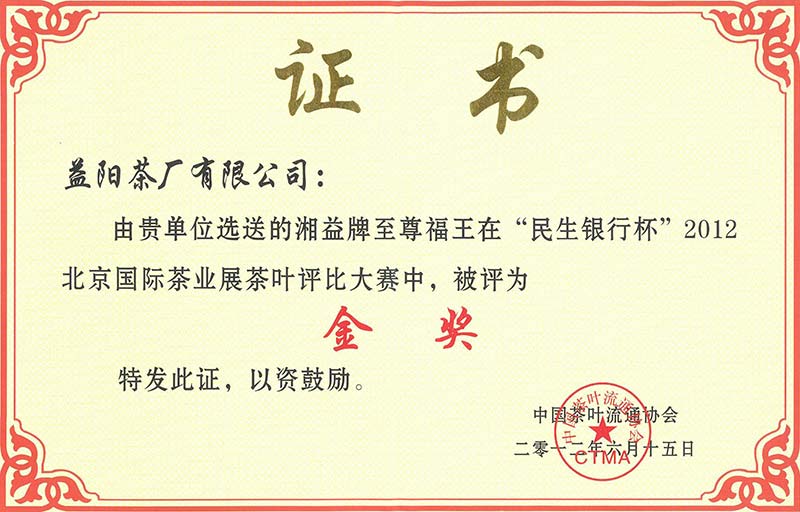 獲北京國(guó)際茶展民生銀行杯金獎(jiǎng)