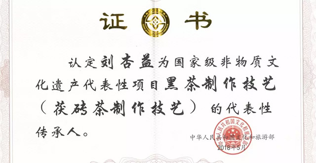 10月9日,益陽市非物質(zhì)文化遺產(chǎn)項(xiàng)目國家級(jí)省級(jí)代表性傳承人證書頒發(fā)儀式在益陽舉行,公司副總經(jīng)理劉杏益榮獲第五批國家級(jí)非物質(zhì)文化遺產(chǎn)代表性項(xiàng)目代表性傳承人、公司質(zhì)管部經(jīng)理黃燕榮獲第四批省級(jí)非物質(zhì)文化遺產(chǎn)代表性項(xiàng)目代表性傳承人。益陽茯磚茶制作技藝因其悠久的歷史文化、精湛的傳統(tǒng)技藝、獨(dú)特的品質(zhì)要求被列入國家級(jí)非物質(zhì)文化遺產(chǎn)保護(hù)名錄。