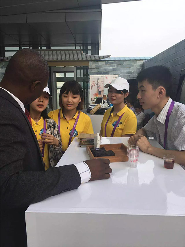 與會(huì)非洲友人品飲湘益茯茶并對(duì)湘益茯茶益生源頗感興趣