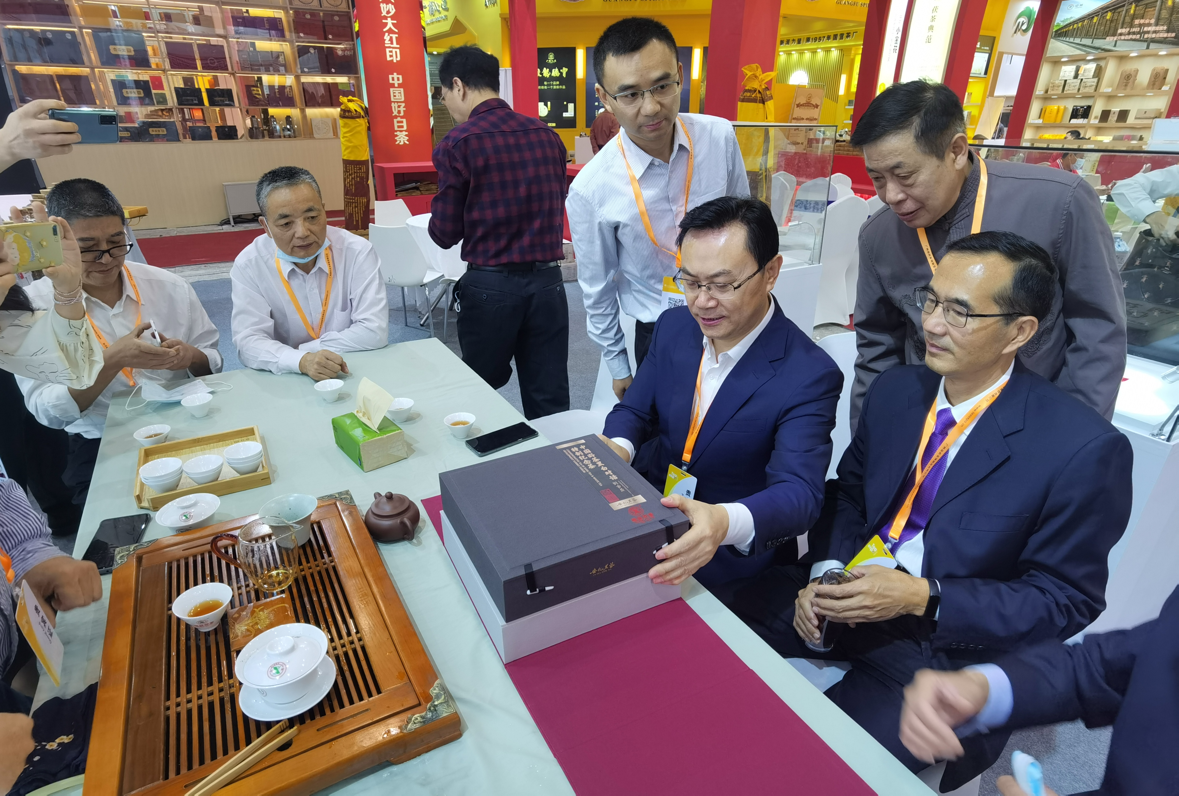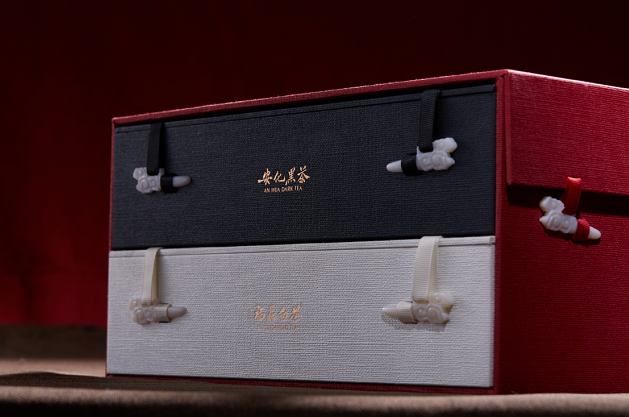 茶禮中一方磚(黑茶)、一圓餅(白茶),均為國家級非遺技藝代表性傳承人劉杏益(黑茶)、梅相靖(白茶)匠心之作,亦堪稱安化黑茶、福鼎白茶兩大地理品牌的佳作!