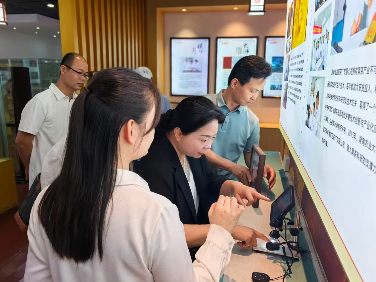 來(lái)訪嘉賓深入生產(chǎn)車(chē)間,實(shí)地參觀了篩分車(chē)間、壓制車(chē)間與金花酵庫(kù)。姚堅(jiān)主席全程陪同下,并憑借其深厚的行業(yè)知識(shí),深入講解從原料精選到茯磚茶“發(fā)花”等核心工藝要點(diǎn),讓來(lái)賓們對(duì)茯磚茶嚴(yán)苛的制作工序有了更清晰的認(rèn)識(shí)。在湘益茯茶博物館,來(lái)賓們通過(guò)詳實(shí)的文字、圖片以及歷史實(shí)物,感受茯磚茶制作技藝傳承數(shù)百年的深厚底蘊(yùn),深入了解益陽(yáng)茶廠六十余載守護(hù)非遺技藝的堅(jiān)守與突破。