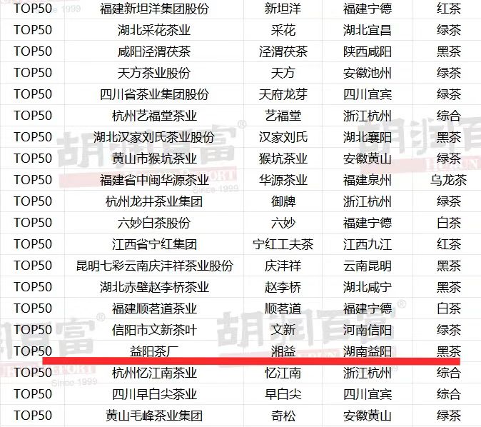 5月,胡潤研究院發(fā)布《2025胡潤中國茶葉領(lǐng)域典范企業(yè)榜》,益陽茶廠有限公司憑借其深厚的行業(yè)積淀、卓越的品牌價值及持續(xù)創(chuàng)新力再度躋身榜單,這是繼去年登榜后,益陽茶廠又一次獲此殊榮,進一步鞏固了其在中國黑茶領(lǐng)域的龍頭地位及行業(yè)標桿形象。