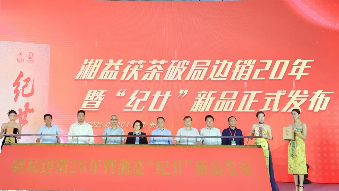 在發(fā)布儀式上,與會領(lǐng)導(dǎo)和專家共同啟動推桿,隨著金沙傾瀉而下,"紀(jì)廿"新品正式亮相,象征著湘益茯茶開啟新的發(fā)展征程。隨后,一場別開生面的新品模特走秀吸引全場目光。身著典雅服飾的模特手捧"紀(jì)廿"新品,以優(yōu)雅的姿態(tài)展示這款傳承與創(chuàng)新相結(jié)合的茯茶珍品,傳統(tǒng)茶文化與現(xiàn)代時尚在此完美交融,凸顯出新品的獨特魅力。