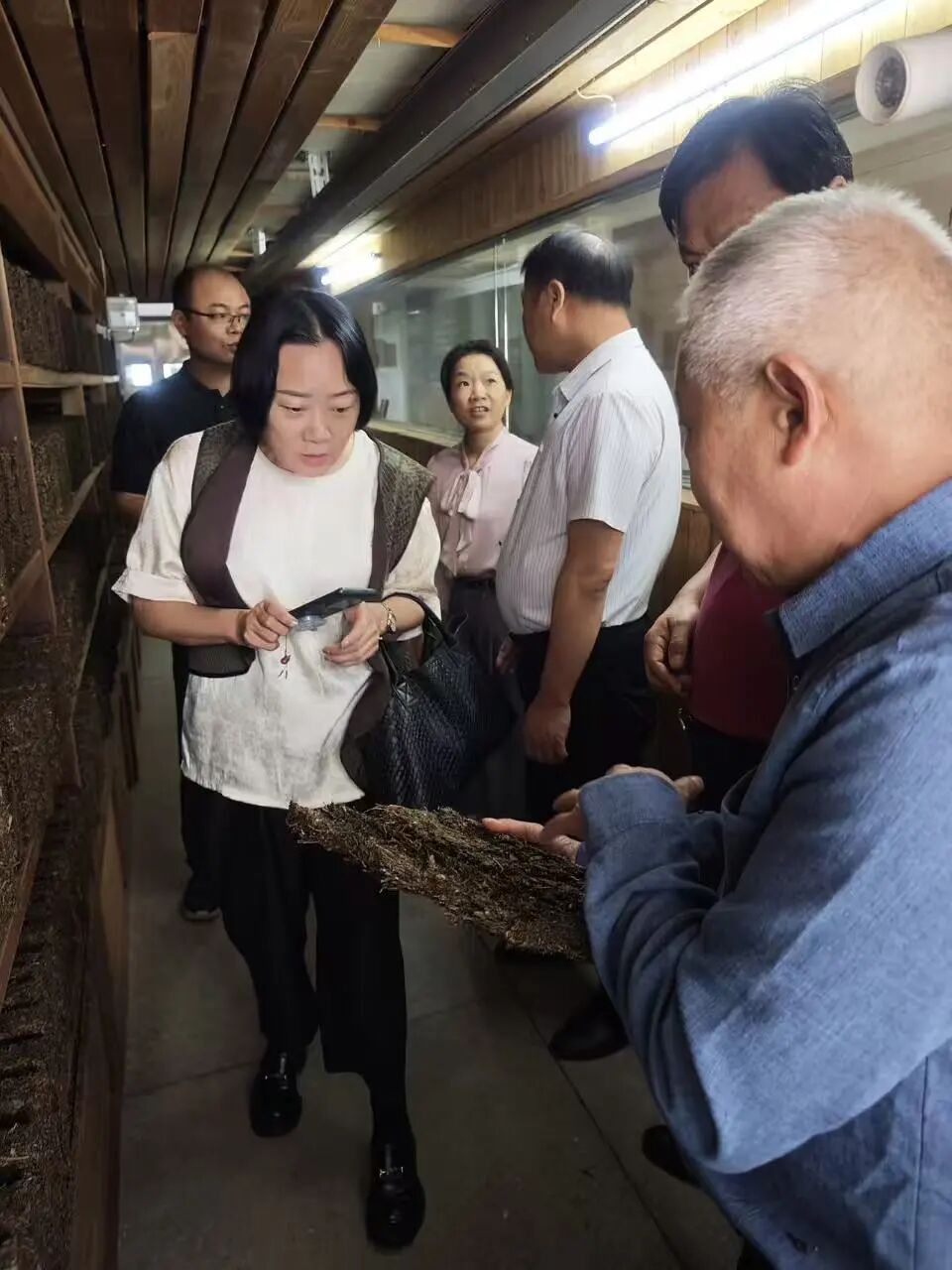 在公司總經(jīng)理余智勇,黨委書記、常務(wù)副總經(jīng)理徐迪軍,首席專家、茯磚茶制作技藝國(guó)家級(jí)非遺傳承人劉杏益等的陪同下,調(diào)研組實(shí)地考察了生產(chǎn)車間、湘益茶博館。在生產(chǎn)一線,調(diào)研組細(xì)致察看了茯磚茶的傳統(tǒng)制作工藝流程;在茶博館,深入了解了茯茶深厚的歷史底蘊(yùn)與企業(yè)發(fā)展歷程。
