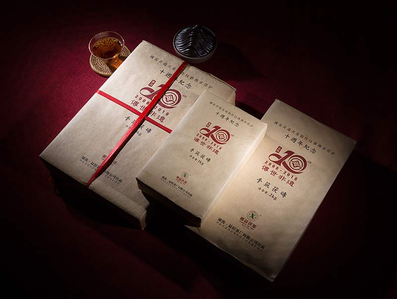 此款組合紀念茶限量收藏禮盒套裝為隆重紀念茯磚茶制作技藝列入國家非物質(zhì)文化遺產(chǎn)保護名錄十周年包含“歲月3kg”、“心傳2kg”、“領(lǐng)悟1kg”三塊精制手筑茯磚,每套均有劉杏益大師親筆簽名,并配備有獨立收藏編號的典藏證書,共10000套,收藏品飲價值皆宜。